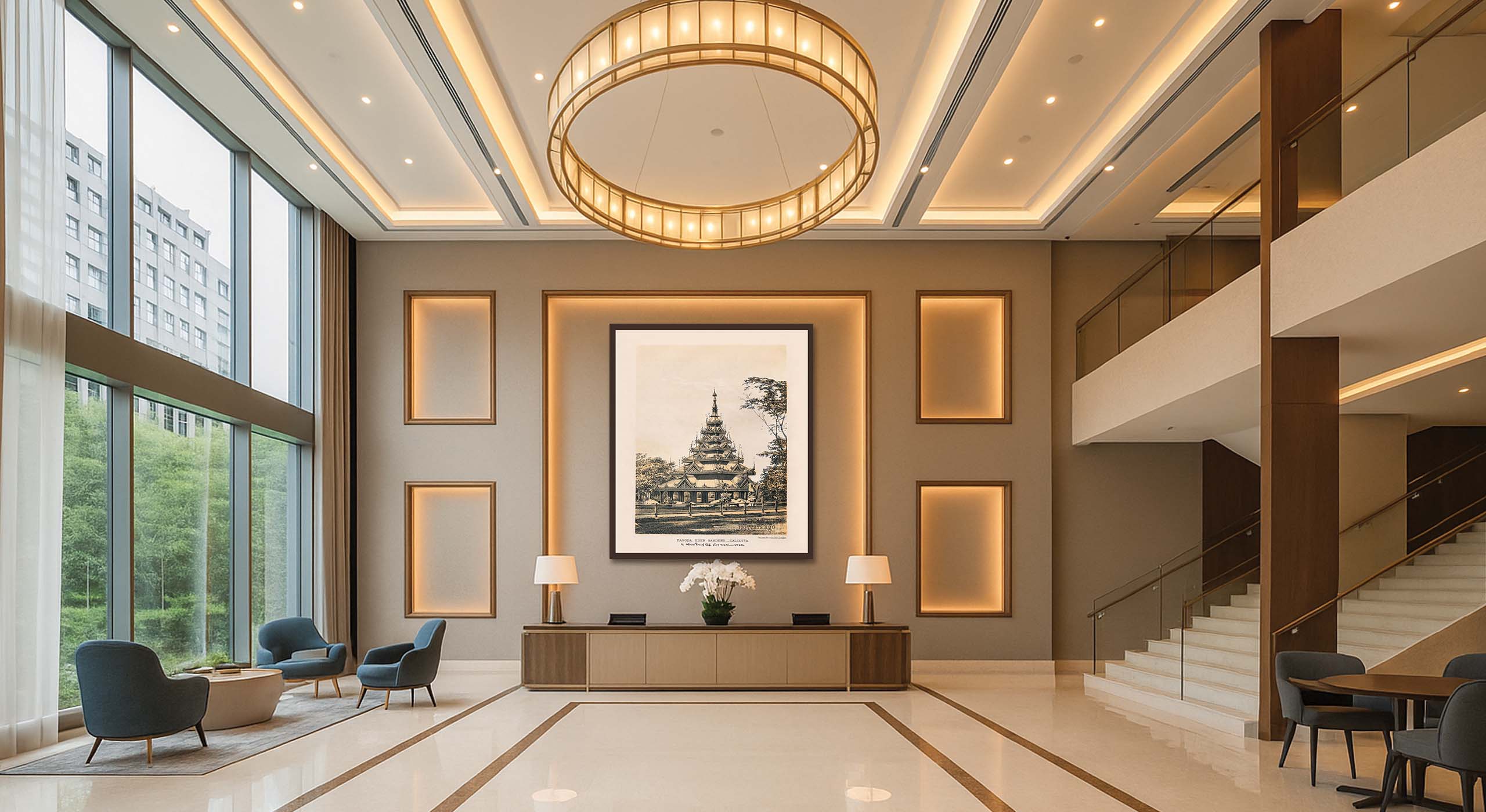 From colonial facades to timeless landmarks discover heritage prints that redefine sophistication in corporate interiors.