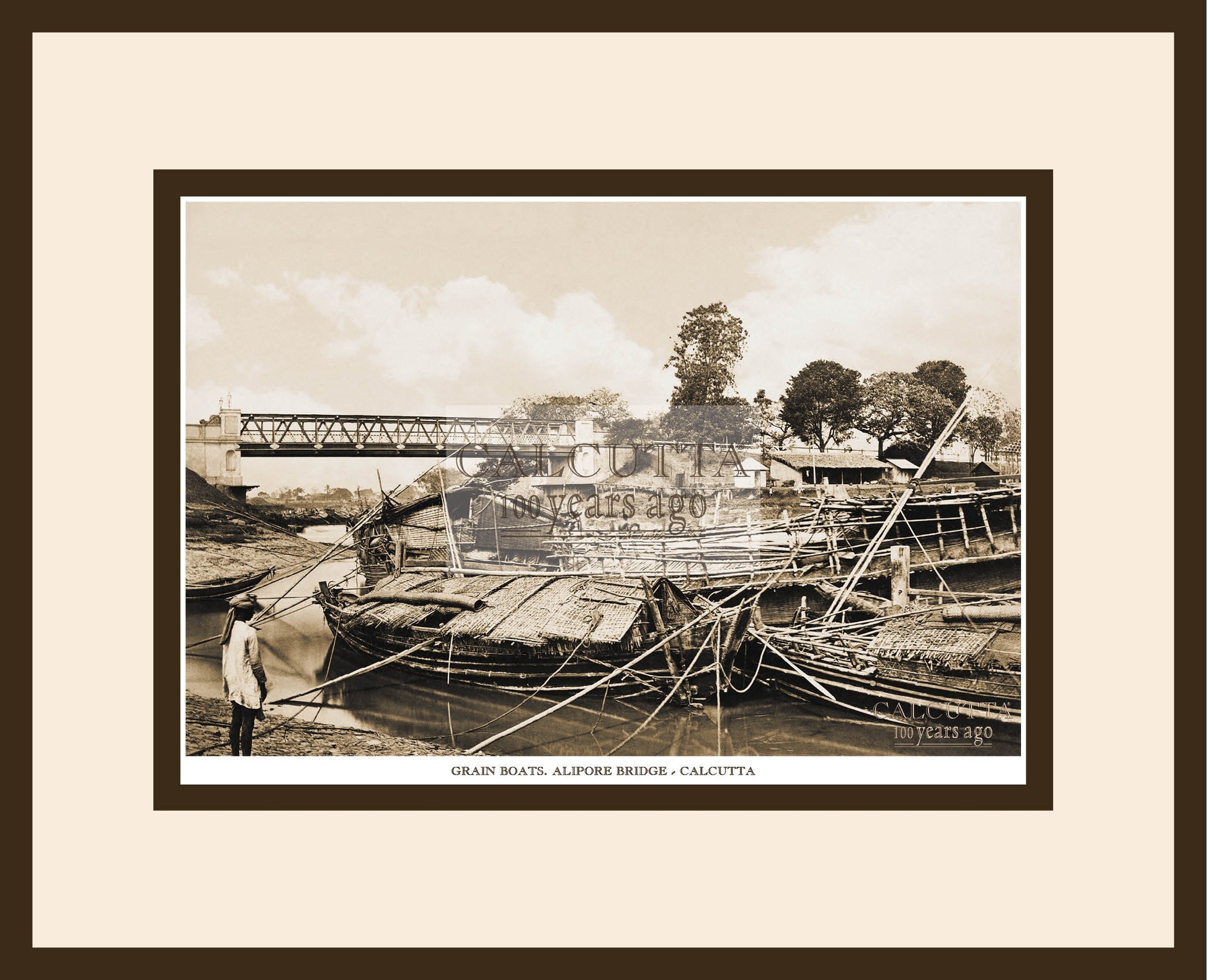 Grain Boats near Alipore bridge (Code: 61) — Wooden Frame.
