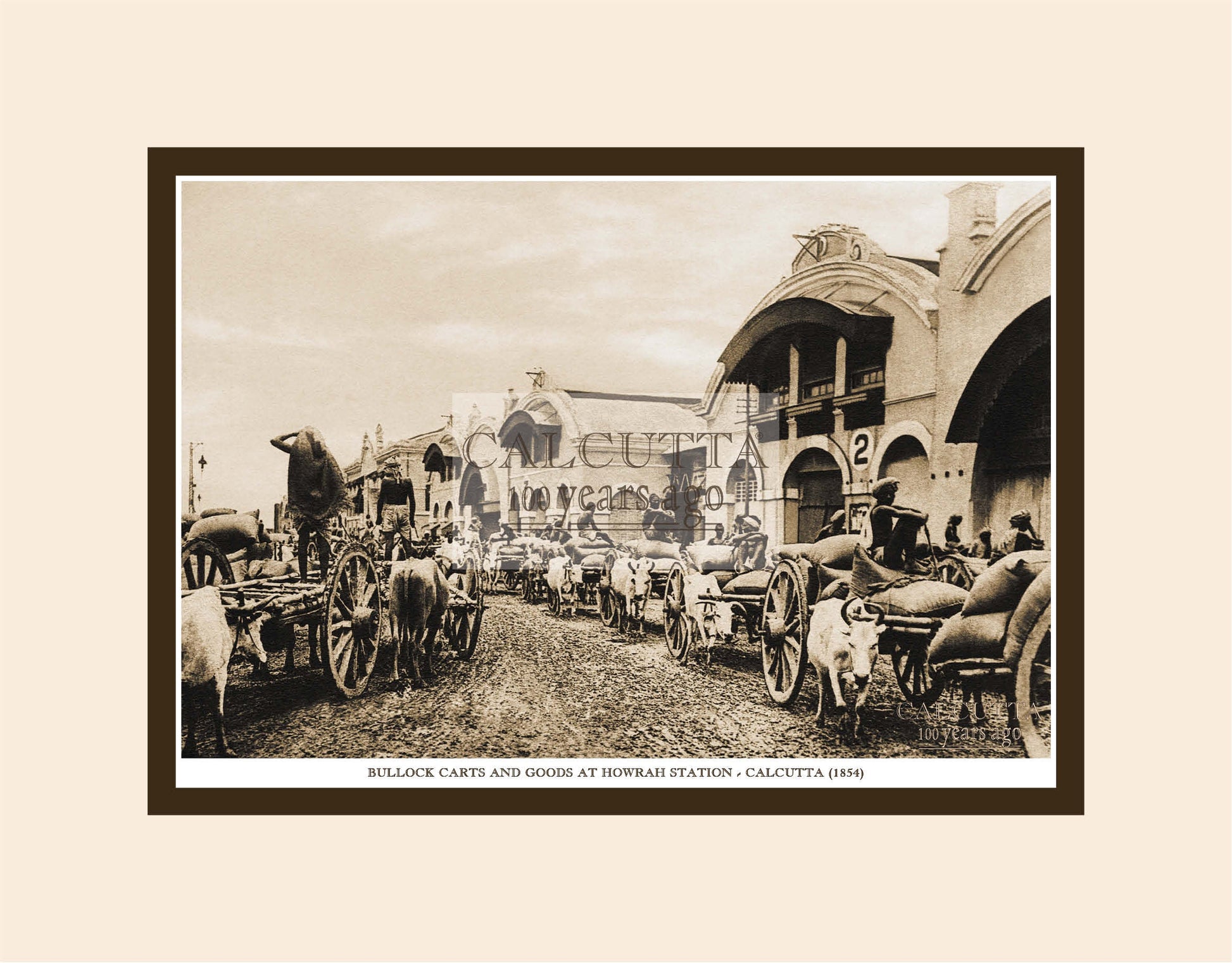 Bullock Carts And Goods At Howrah Station (Code: 15) — Mounted Photo Print.