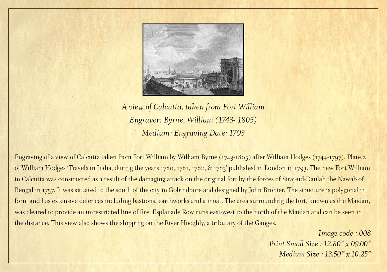 Calcutta Lithographs (Black & White) — A view of Calcutta, taken from Fort William (Code: 008) from our museum-grade series. Each monochrome lithograph is produced with archival pigment on heavyweight art paper to preserve crisp line-work and tonal depth.