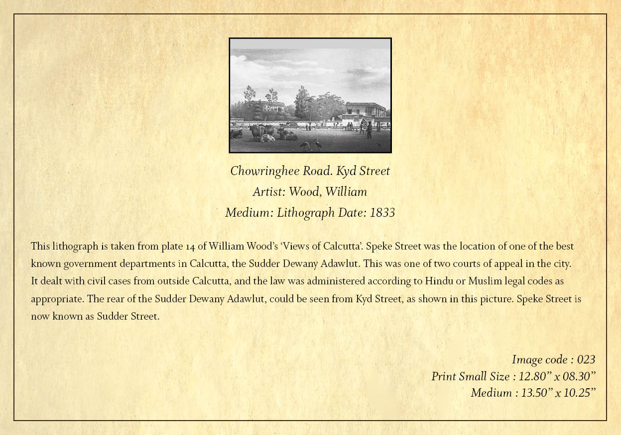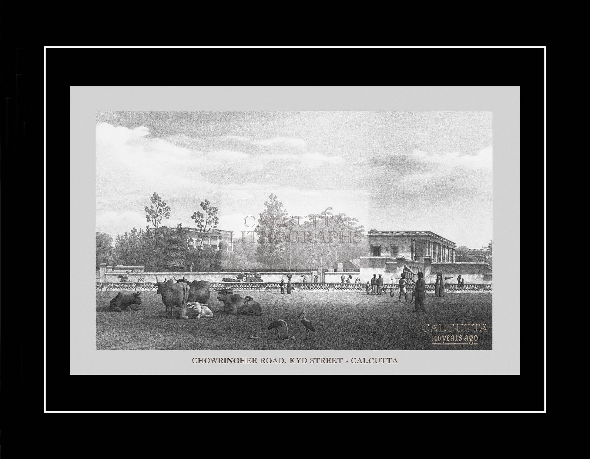 Chowringhee Road. Kyd Street (Code: 023) – Black & White Lithograph