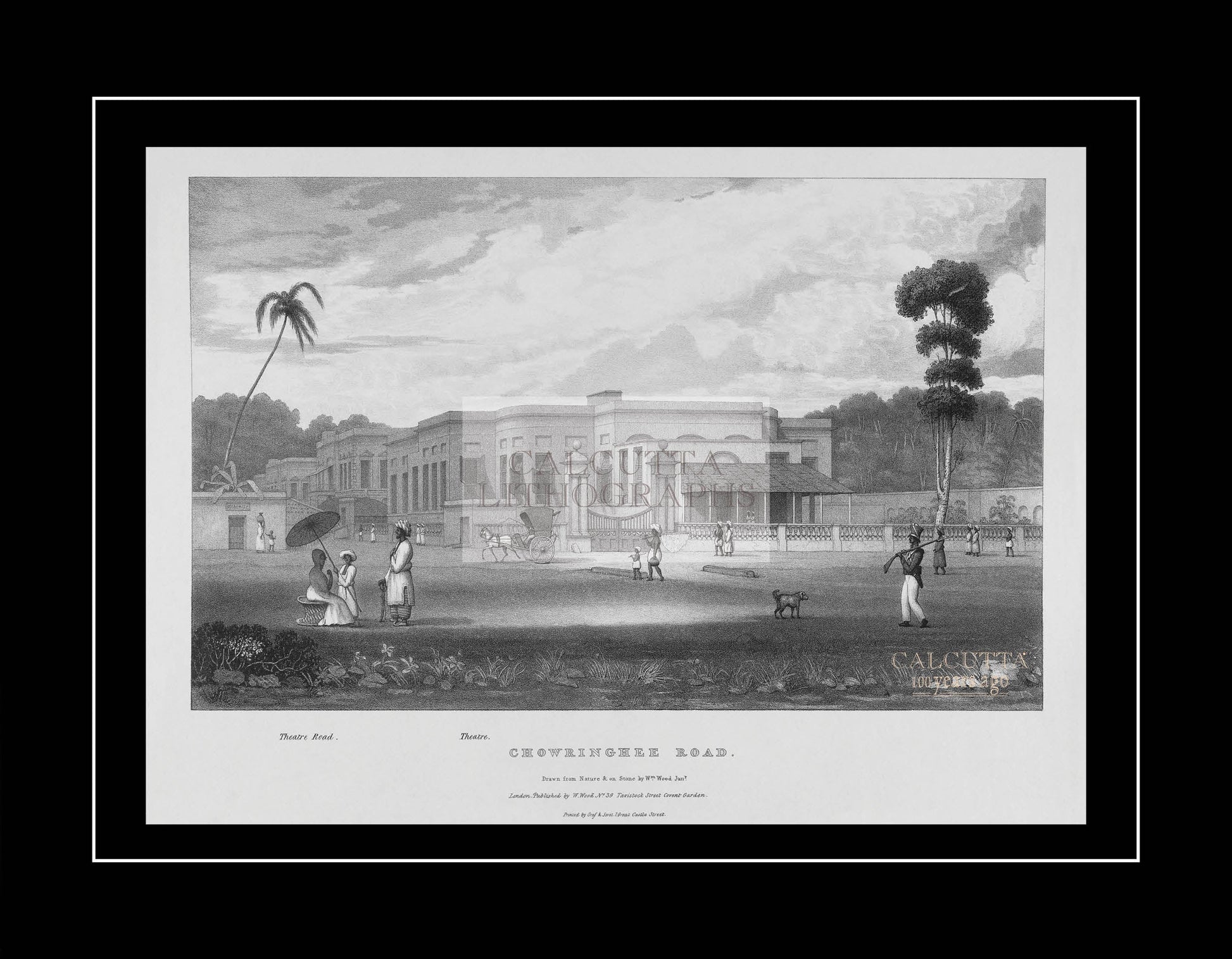 Calcutta Lithographs (Black & White) — Chowringhee Road. Theatre Road – Calcutta (Code: 029) from our museum-grade series. Each monochrome lithograph is produced with archival pigment on heavyweight art paper to preserve crisp line-work and tonal depth.