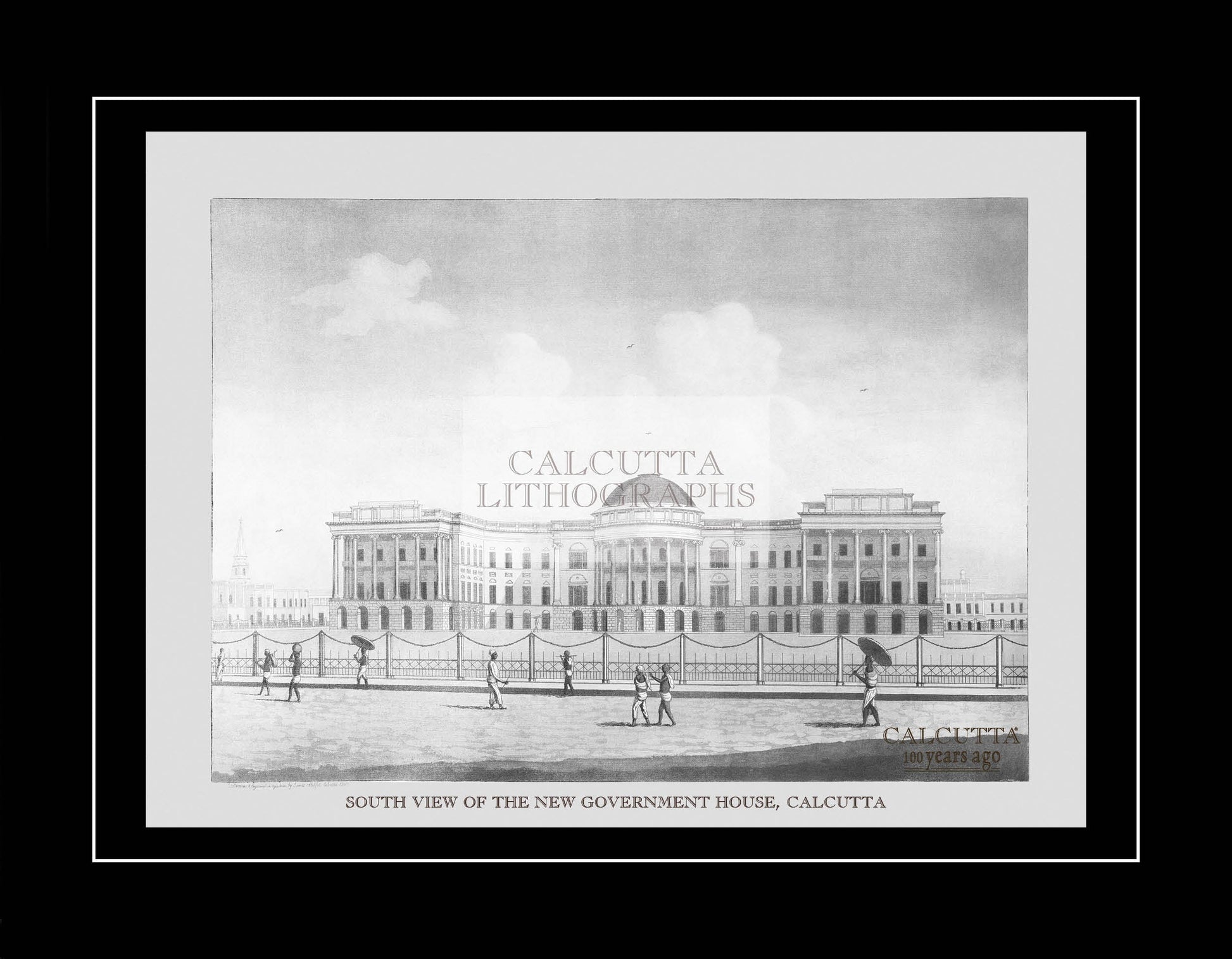 Calcutta Lithographs (Black & White) — South view of the New Government House, Calcutta (Code: 004) from our museum-grade series. Each monochrome lithograph is produced with archival pigment on heavyweight art paper to preserve crisp line-work and tonal depth.