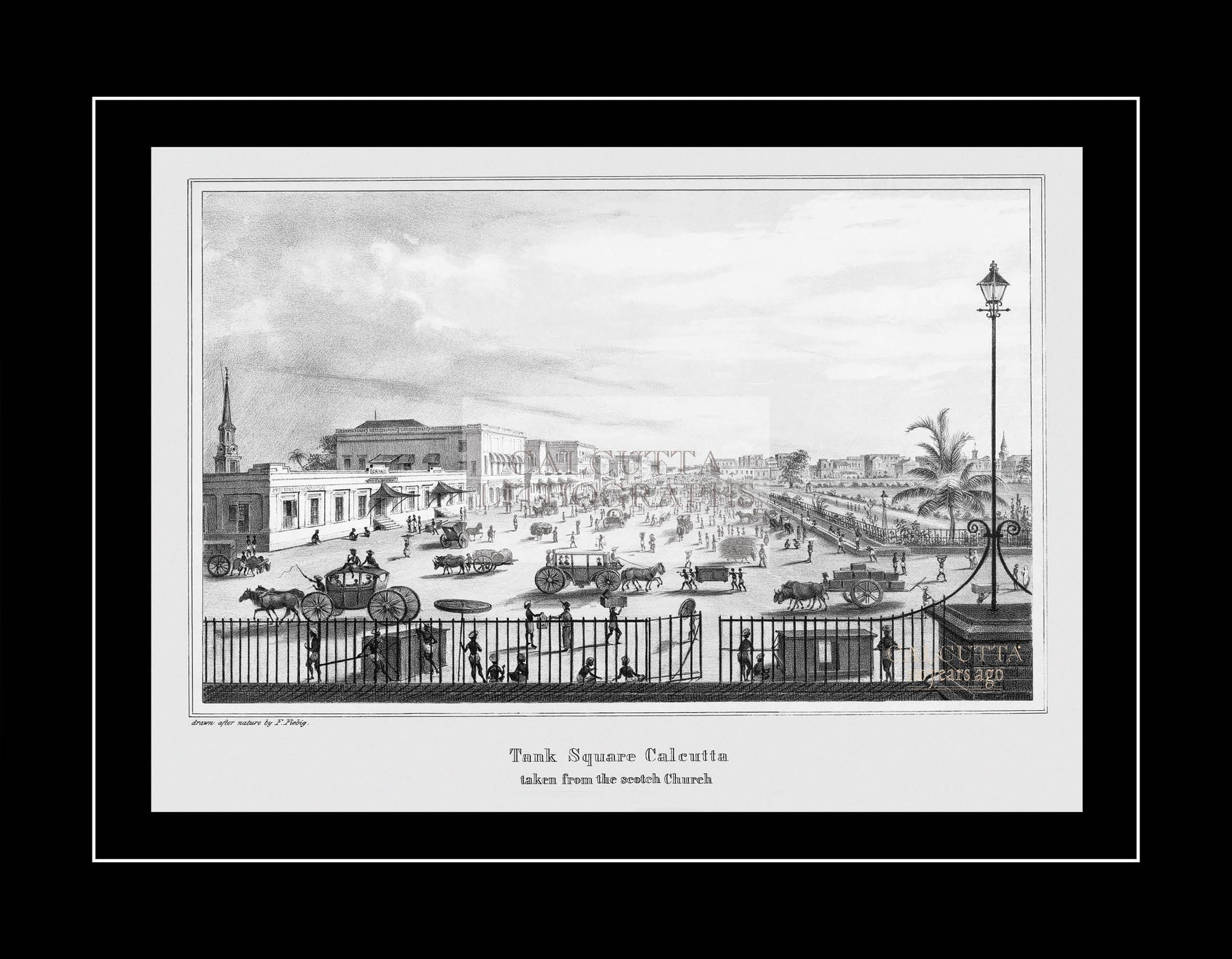 Calcutta Lithographs (Black & White) — Tank Square Calcutta taken from the Scotch Church (Code: 052) from our museum-grade series. Each monochrome lithograph is produced with archival pigment on heavyweight art paper to preserve crisp line-work and tonal depth.