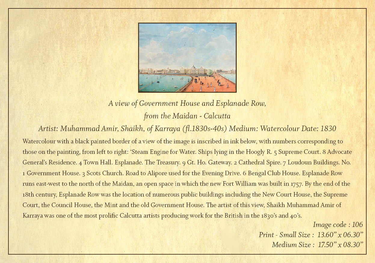 A View of Government House and Esplanade Row, from the Maidan (Code: 106) – Coloured Lithograph