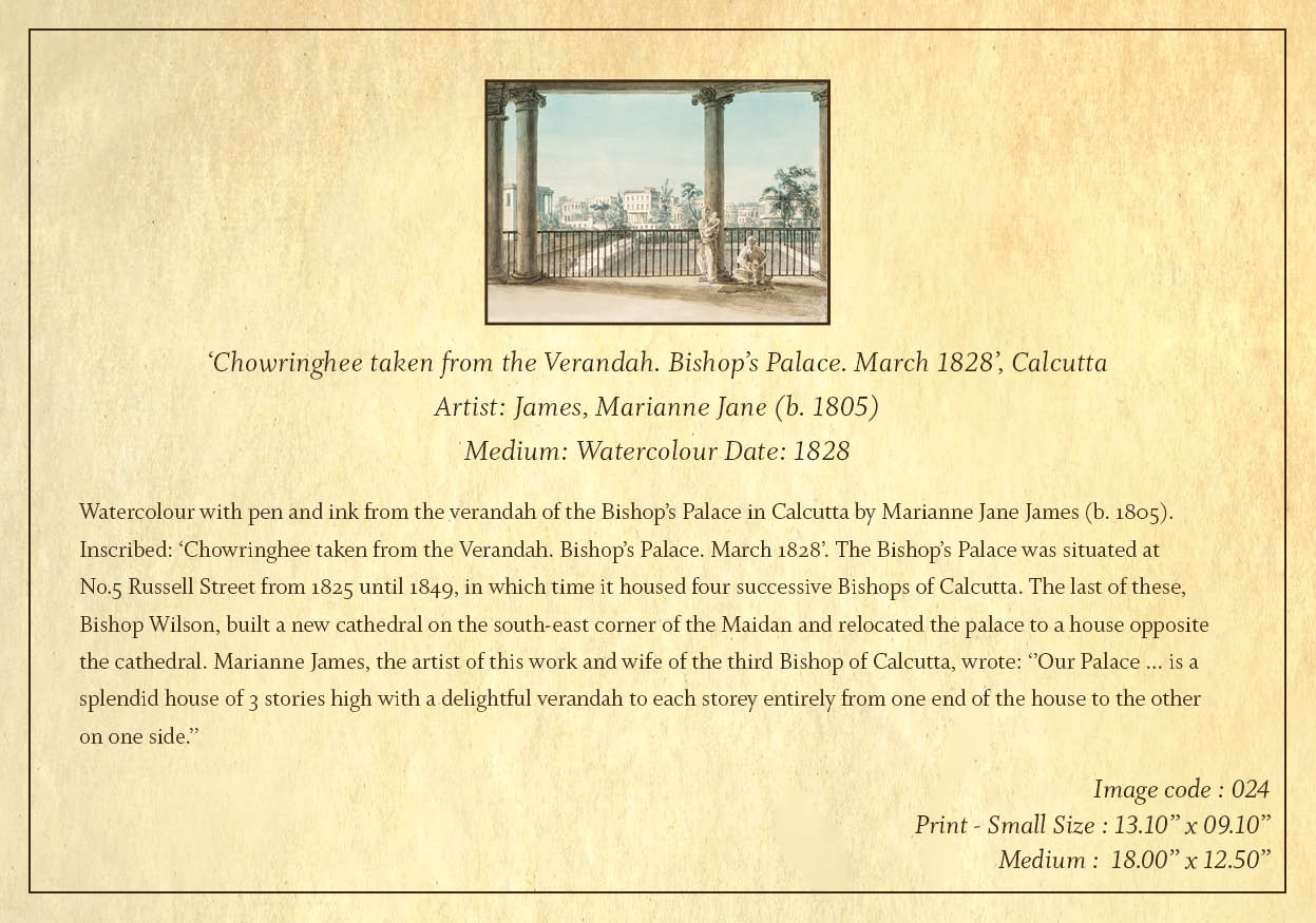 Chowringhee taken from the Verandah of Bishop’s Church (Code: 024) – Coloured Lithograph