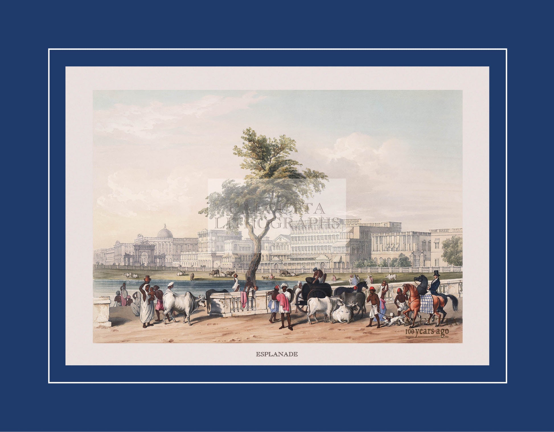 Calcutta Lithographs (Coloured) — The Government House in Calcutta (Code: 001) from our museum-grade series. Each monochrome lithograph is produced with archival pigment on heavyweight art paper to preserve crisp line-work and tonal depth.