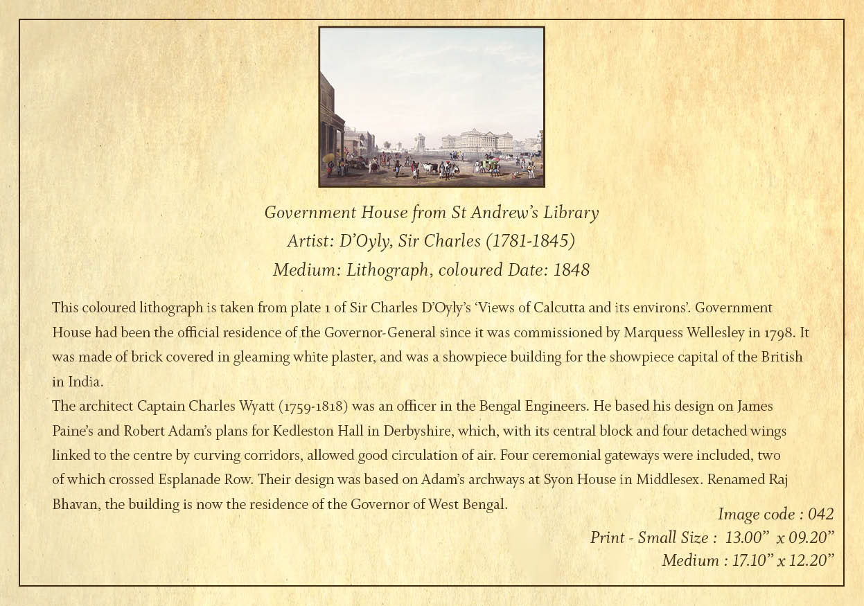 Calcutta Lithographs (Coloured) — The Government House in Calcutta (Code: 001) from our museum-grade series. Each monochrome lithograph is produced with archival pigment on heavyweight art paper to preserve crisp line-work and tonal depth.