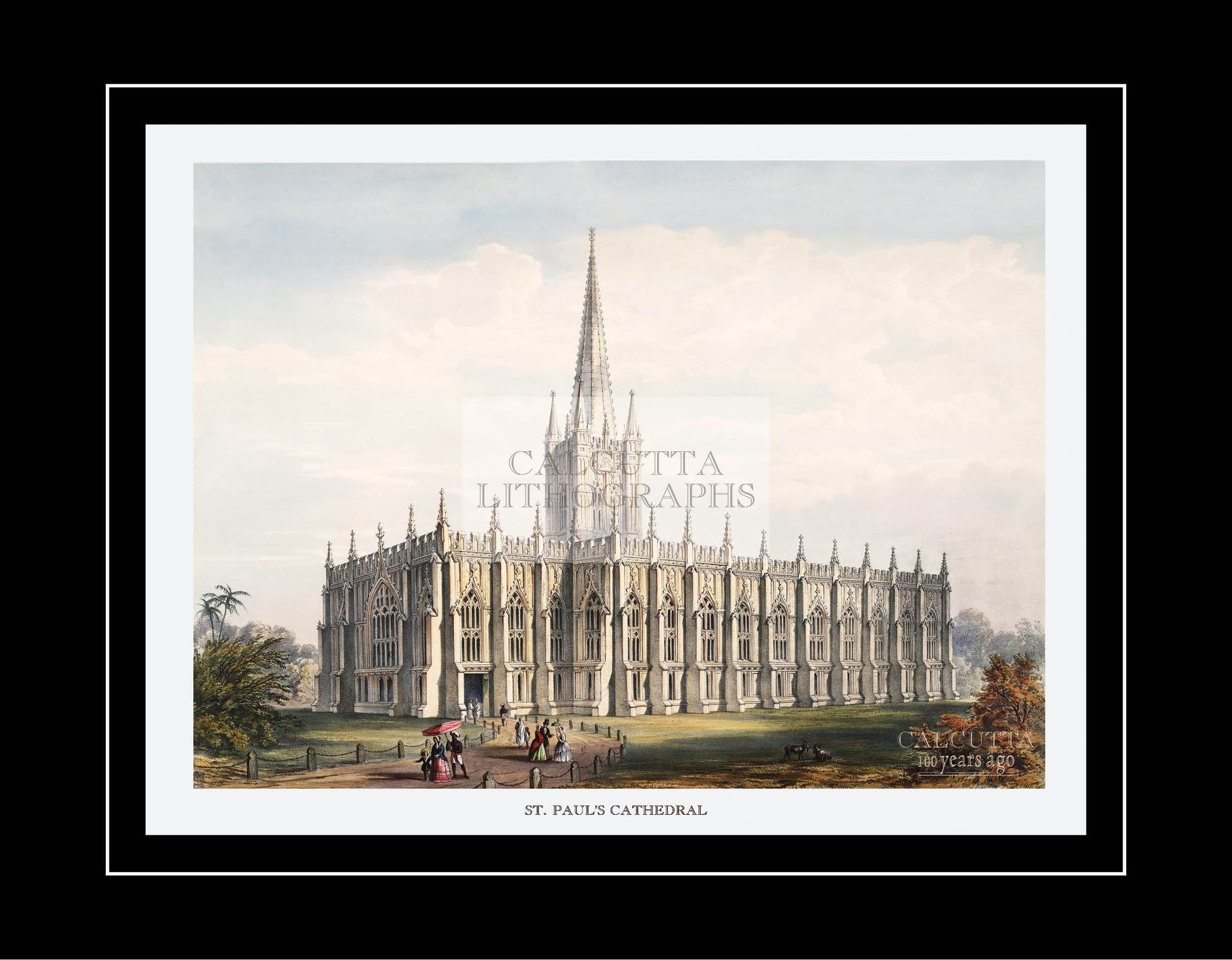 Calcutta Lithographs (Coloured) — The Government House in Calcutta (Code: 001) from our museum-grade series. Each monochrome lithograph is produced with archival pigment on heavyweight art paper to preserve crisp line-work and tonal depth.