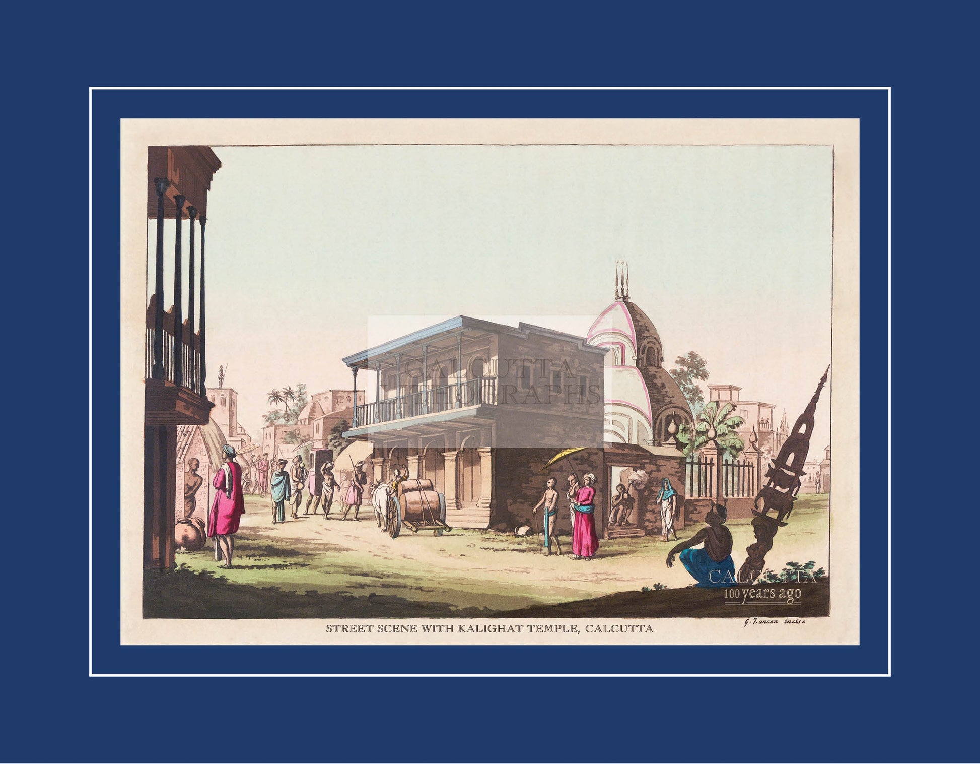 Street Scene with Kalighat Temple, Calcutta (Code: 073) – Coloured Lithograph